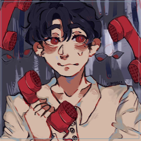 "Ring, ring, ring!"Okay so this one is also centered in around the 90's but it's definitely more story driven!!The main character is a 19 year old college student who works as his dad's assistant in a newspaper firm. He's been dealing with ghosts ever since he got into an accident when he was five. He lives with his father, grandmother, and little sister.He could see ghosts, but the only way he's able to communicate with them is through a bright red dial-up phone in his dad's office.He hates seeing them so much, because most of the time, the ghost reflects the way they died. He has heavy anxiety and a hard time figuring out who's alive and who isn't.Vengeful spirits are the ones to be most wary of, they could contact him through every means possible- including possession. ((More art soon))